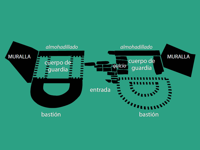Las puertas de entrada a una ciudad romana, se disponían en los lugares en los que el recorrido de las vías principales de circulación, coincidían con el recinto amurallado que definía el espacio urbano o pomerium. Generalmente una ciudad romana tenía cuatro puertas que se correspondían con el trazado de las dos calles principales siguiendo las direcciones norte-sur; este-oeste. Las puertas estaban flanqueadas por torres que se reforzaban, como medida de cautela, creando puntos de control para el acceso de personas y el tráfico comercial.
