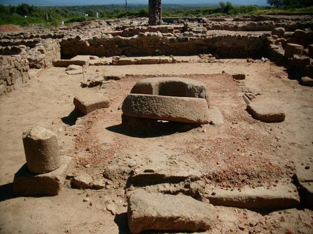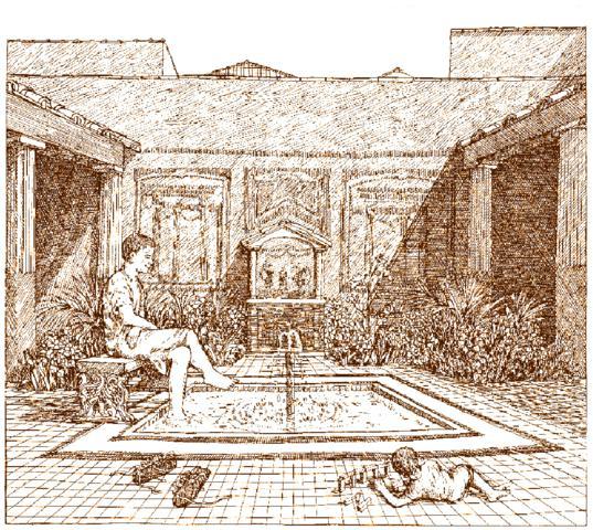 Un gran umbral de granito marcaba el acceso al interior y a través de un ancho pasillo se alcanzaba el patio interior (peristilum) en torno al cual se distribuyeron las habitaciones más importantes de la vivienda. En el lado occidental, la construcción contaba con otro pequeño patio interior que sirvió para la ventilación, circulación y acceso a otras dependencias, de dimensiones más reducidas y carácter funcional como cocinas, despensas de almacenaje… La construcción contaba, además, con un patio trasero o zona de huerta, que delimitado por su fachada posterior.