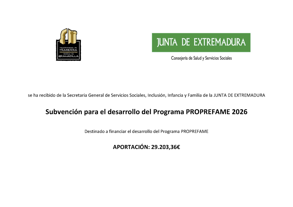 Subvención para el desarrollo del Programa PROPREFAME 2026